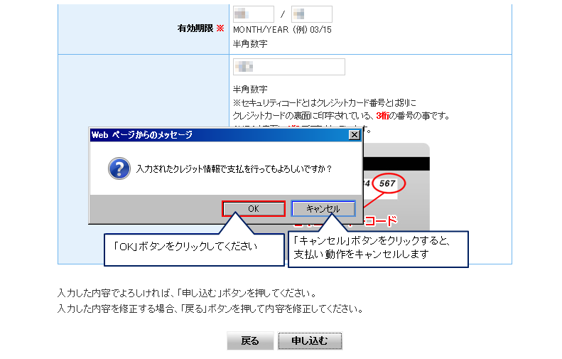 「※」の項目は入力必須項目となっています。必ず入力してください。 CLレベル5認定更新手続の認定料をクレジットカードで支払う場合、「クレジットカードでのお支払」にチェックを入れ、「確認」ボタンをクリックしてください。 入力項目に不備があると、その項目に赤文字で「未選択です。」などのメッセージが表示されます。 表示メッセージに従い、入力内容を修正してください。 前に戻る 次へ進む ご利用ガイドメニューに戻る |